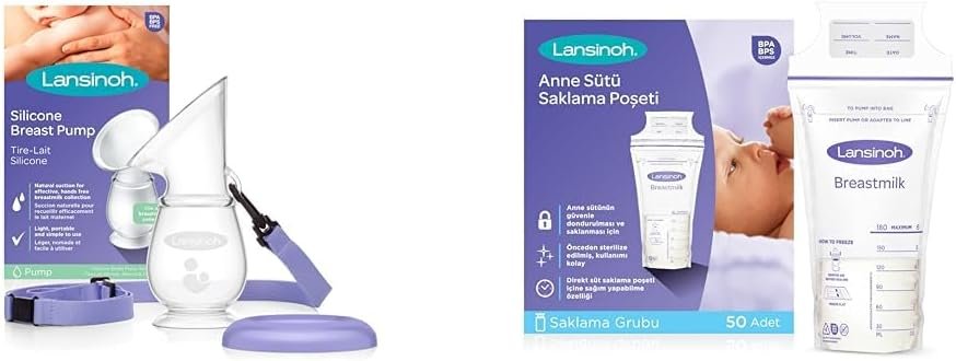Lansinoh Silikon Göğüs Pompası ve Anne Sütü Yakalayıcı & Süt Saklama Poşeti (50’li) Seti ile Anne Sütünüz Güvende!