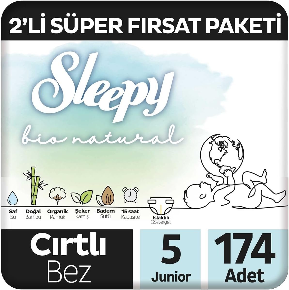 2 Paket Sleepy Bio Natural Bebek Bezi 5 Numara (Junior) (Toplam 174 Adet)