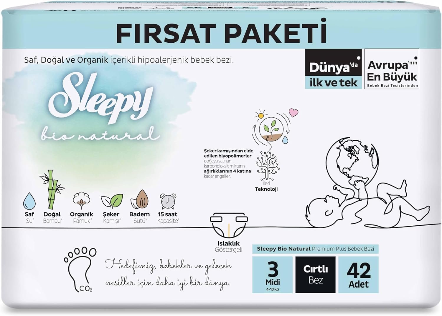 Sleepy Bio Natural 3 Numara Midi (4-9 kg) 42 Adet Fırsat Paketi | En Uygun Fiyat