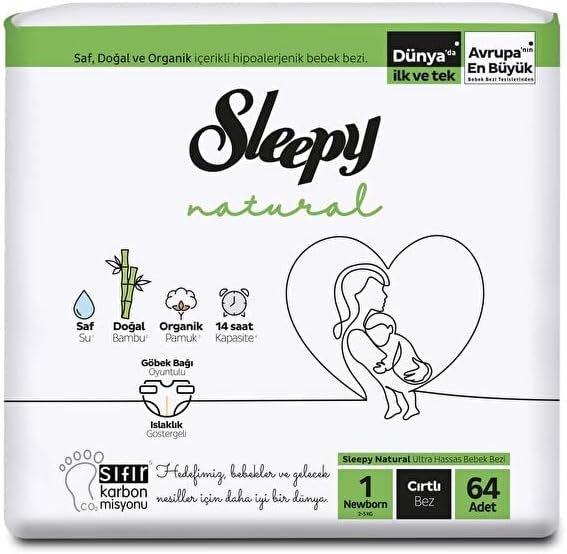 Sleepy Natural Yenidoğan bebek bezi, bebeğinizin sağlığı ve konforu ön planda tutularak üretilmiştir. Doğal içeriği, sızdırmazlığı ve nefes alabilen yapısı ile hem bebeğinizin hem de sizin için rahat bir kullanım deneyimi sunar. Bebeğinizin hassas cildine en iyi bakımı yapmak için Sleepy Natural’i tercih edin!