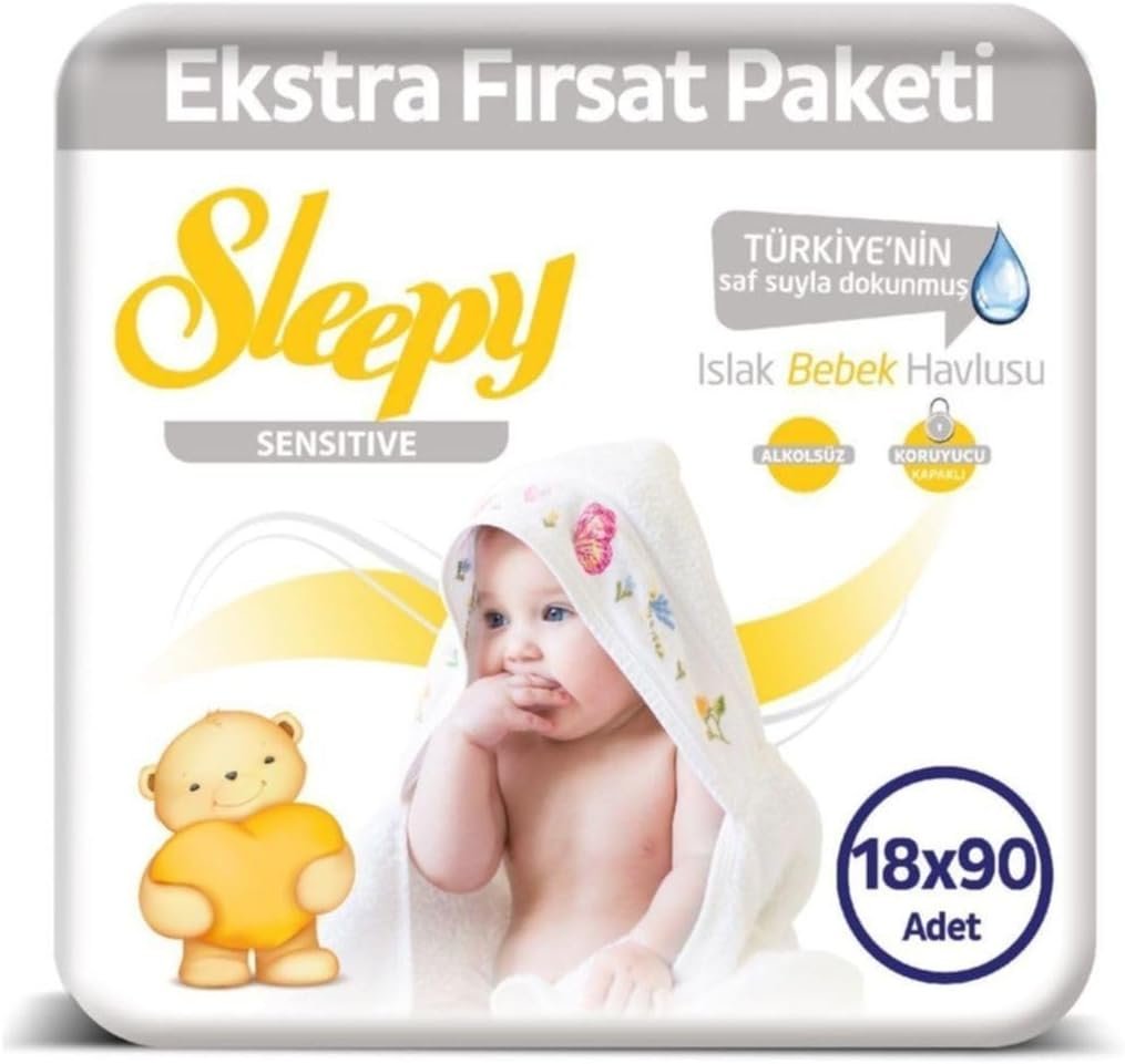 Minik Fırsatlar’da Sleepy Sensitive Islak Mendil 18’li paket ile bebeğinizin hassas cildini nazikçe temizleyin. Ekonomik ve pratik aylık çözüm!